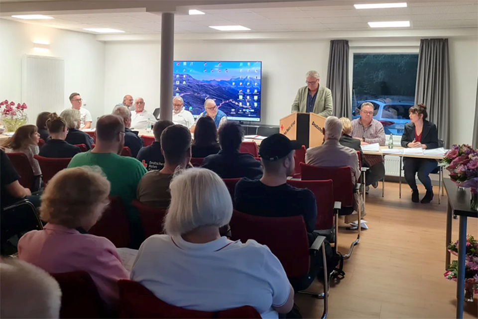 Zahlreich finden sich die Teilnehmer und Teilnehmerinnen zur Jahresmitgliederversammlung des DRK-Ortsvereins Celle am Abend des 28. September in der Fundumstraße 1 ein. Zum ersten Mal trifft man sich zu diesem Anlass im neuen Seminarraum, der nach der Sanierung des Verwaltungsgebäudes entstanden ist.
